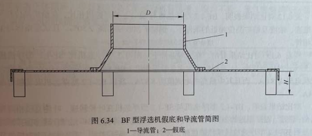 假底的高度H必须保证足够量的矿浆能通过假底和槽底之间并通过导流管进行下循环。研究表明混合型导流管能很好地保证粗颗粒矿物的悬浮,而浮选指标和能耗基本没有变化。